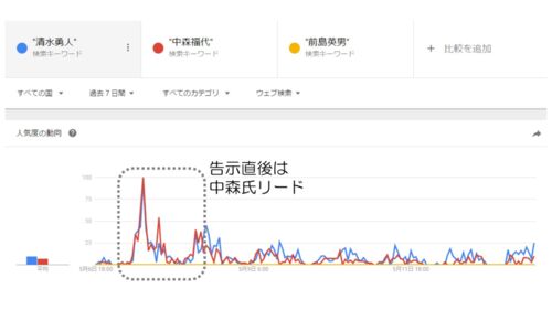 選挙結果を事前に予測する可能性のひとつとして、選挙区の市民のウェブ上での検索数やSNSでの発言量などから、選挙結果を予測する方法がある。 ネットでよく検索されたり、SNS上でよく言及されたりする候補者は市民の関心が高いことを反映しているので当選し…